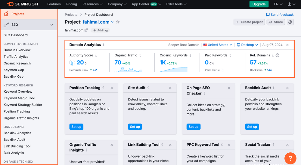 Semrush is still one of my go-to tools when I want deeper competitor insights or want to track performance over time. It shows you what’s working in your niche and where the opportunities are. This is one of the most used tools I came across.